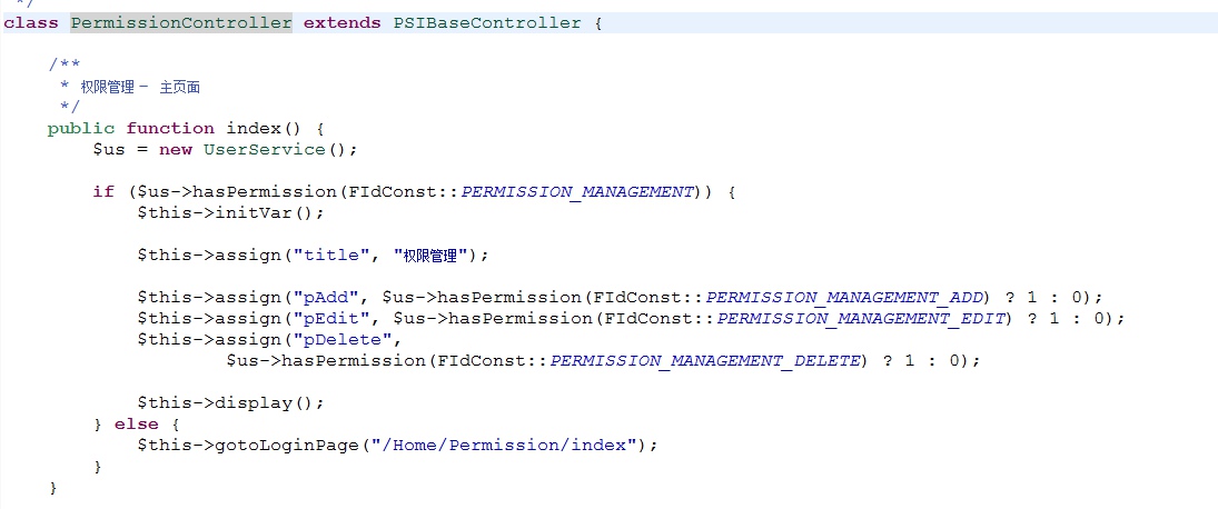 下图是PermissionController的index()的方法。